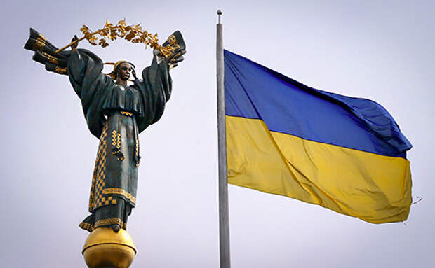 Монумент Независимости и государственный флаг Украины на площади Независимости в Киеве